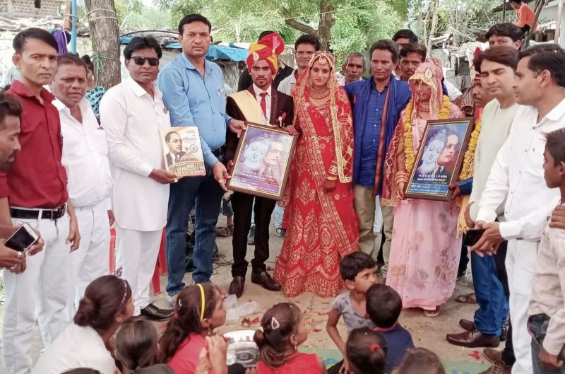 जिला मुख्यालय से करीब ३५ किमी दूर ग्राम देवला में रविवार को दो युवतियों का विवाह हुआ। शादी में जो भी शामिल हुआ वह अचरज में था। क्योंकि यहां न सभा मंडप बना था न बैंड। दूल्हा घोड़ी चढ़ा न दुल्हन ने सात वचन लिए। दरअसल यहां राजेश नागराज की बेटियों ने अपने जीवनसाथी के साथ संविधान की शपथ लेकर शादी रचनाई। नवयुगल ने उपहार में बाबा साहेब भीमराव अंबेडकर की तस्वीर ली। यह विवाह बौद्ध पद्धति से किया गया।