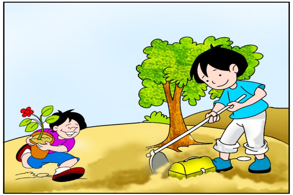 साल रमेश और निकेश बहुत पक्के मित्र थे। एक दिन वे दोनों मैदान में मिट्टी से खेल रहे थे। खेलते-खेलते उनके मन में एक बहुत अच्छा विचार आया। उन्होंने सोचा कि क्यों न इस खाली जगह को हरा-भरा बनाया जाए और यहां कुछ पौधे लगाए जाएं। दोनों ने मिलकर तय किया कि वे यहां पौधारोपण करेंगे। निकेश तुरंत भागकर अपने घर गया और एक नन्हा सा पौधा ले आया। दूसरी ओर, रमेश ने पौधा लगाने के लिए जमीन में गड्ढा खोदना शुरू कर दिया। रमेश अभी कुछ ही गहराई तक गड्ढा खोद पाया था कि उसकी कुदाल किसी सख्त चीज से टकराई। दोनों ने उत्सुकता से और खुदाई की, तो उन्हें मिट्टी के नीचे दबा हुआ एक छोटा सा संदूक मिला। जब उन्होंने सावधानी से उस संदूक को खोला, तो उनकी आंखें फटी की फटी रह गईं। उसमें सोने के ढेर सारे सिक्के चमक रहे थे। इतना बड़ा खजाना पाकर दोनों दोस्त बहुत खुश हुए। लेकिन सबसे अच्छी बात यह थी कि उन्होंने अपने नेक काम को अधूरा नहीं छोड़ा। खजाना मिलने के बाद भी वे दोबारा अपने काम में जुट गए और पूरी श्रद्धा के साथ उस पौधे को जमीन में रोप दिया।