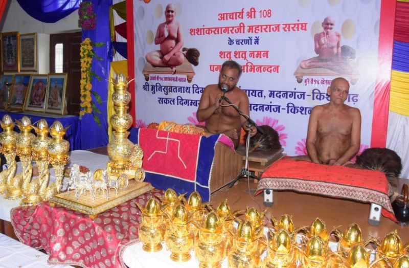मुनिसुव्रतनाथ दिगंबर जैन पंचायत एवं सकल दिगंबर जैन समाज के संयुक्त तत्वावधान में कार्यक्रम का शुभारंभ पंडित अनूप शास्त्री के निर्देशन में नेमीचंद, माणकचंद, पदमचंद, नरेंद्र कुमार, सुनील कुमार गंगवाल परिवार ने ध्वजारोहण कर किया। ध्वजगीत कमल बैद ने प्रस्तुत किया। धर्मसभा का शुभारंभ भगवान मुनिसुव्रतनाथ, पदमप्रभु, आचार्य शांतिसागर, आचार्य वर्धमान सागर, आचार्य सन्मति सागर, आचार्य विद्यासागर एवं आचार्य सिद्धांत सागर के चित्र के समक्ष दीप प्रज्वलन किया गया। मंगलाचरण मिशिका जैन एवं मंच संचालन अजीत बाकलीवाल ने किया। सकल दिगंबर जैन समाज की ओर से आचार्य ससंघ को श्रीफल भेंट कर चातुर्मास मंगल कलश स्थापना करने का निवेदन किया गया। कार्यक्रम में भगवान मुनिसुव्रतनाथ, पदमप्रभु भगवान, आचार्य शांतिसागर, आचार्य वर्धमान सागर, आचार्य विद्यासागर, आचार्य सन्मति सागर, आचार्य सिद्धांत सागर को अघ्र्य समर्पित किए गए और इसके बाद आचार्य शशांक सागर का पाद प्रक्षालन एवं शास्त्र भेंट किए गए। इसके बाद अष्ट द्रव्य से श्रावक- श्राविकाओं ने भक्ति भाव से पूजन करते हुए अघ्र्य समर्पित किए। कार्यक्रम में मुनिसुव्रतनाथ दिगंबर जैन पंचायत के अध्यक्ष विनोद पाटनी एवं आदिनाथ दिगंबर जैन पंचायत के अध्यक्ष प्रकाशचंद गंगवाल ने विचार व्यक्त किए। धर्मसभा को सम्बोधित करते हुए आचार्य शशांक सागर ने चातुर्मास की महिमा का गुणगान किया और सभी को मंगल आशीर्वाद दिया। आचार्य ने चातुर्मास मंगल कलश स्थापना की विधि-विधान पूर्वक क्रियाएं करवाई। चातुर्मास मंगल कलश स्थापना करने का सौभाग्य कन्हैयालाल, राज कुमार, पवन कुमार, पंकज कुमार बडज़ात्या, मोतीलाल, नरेश कुमार, राकेश कुमार गंगवाल, राज कुमार, जय कुमार, निर्मल कुमार, प्रदीप कुमार दोसी एवं अन्य श्रद्धालुओं को मिला।