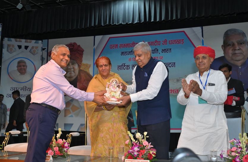 उप राष्ट्रपति धनखड़ ने कहा कि जब मैं उप राष्ट्रपति बना और मुख्यमंत्री ने मेरे लिए भोज का आयोजन किया तो मुझे अशोक पाटनी मिले। इन्हें देख कर मुझे अमिताभ बच्चन की फिल्म का वह डायलॉग याद आया कि मैं जहां खड़ा होता हूं, लाइन वहीं से चालू होती है। अपने सम्बोधन में उप राष्ट्रपति धनखड़ ने जिला कलक्टर भारती दीक्षित एवं अजमेर एसपी चूनाराम जाट की भी सराहना की।गर्म जोशी से किया अभिनंदन