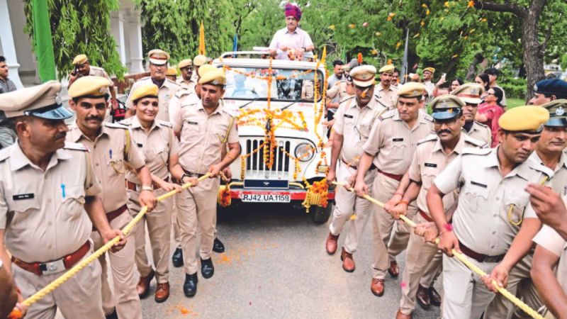 आईपीएस अधिकारी सिंह को संस्था की खुली जीप में बैठाकर अधिकारियों एवं कार्मिकों ने जीप को रस्से से सांकेतिक रूप से खींचकर राजकीय निवास ध्रुपद विलास के लिए रवाना किया। समारोह में भंवर रणधीर सिंह कमांडेन्ट आरपीटीसी किशनगढ़ एवं लोकेश त्रिपाठी कमांडेन्ट पीटीएस सिलोरा, बृजेशसिंह उप अधीक्षक पुलिस, त्रिलोक सिंह उप अधीक्षक पुलिस, सत्येन्द्र कुमार संचित निरीक्षक, धर्मराज मीणा, संचित निरीक्षक बलराम सिंह, निरीक्षक जगदीश प्रसाद निरीक्षक आदि मौजूद रहे।