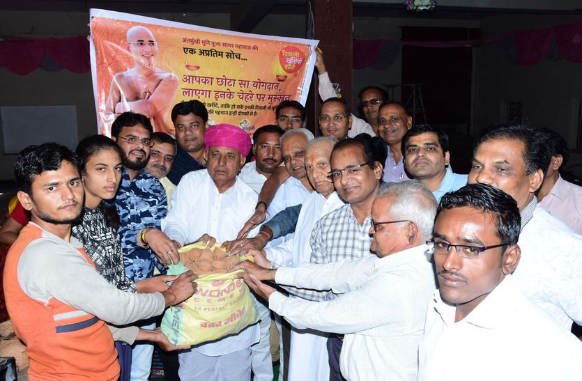 सांसद भागीरथ चौधरी ने कहा कि अंतर्मुखी मुनि पूज्य सागर के दिवाली खुशियों की अभियान की सराहना करते हुए कहा कि इसकी वर्तमान समय में काफी जरुरत है। हम सभी को इस दिपावली को अपने अपने घर मिट्टी के दीपक जला कर रोशनी करनी चाहिए। सांसद चौधरी ने यह बात जैन भवन में बुधवार को दिवाली खुशियों वाली अभियान के शुभारंभ के मौके पर कही। सांसद ने कहा कि वह भी महात्मा गांधी की 150 वी जयंती पर संकल्प यात्रा के दौरान भी सभी से मिट्टी के दिपक जलाने की अपील कर रहे है। उन्होंने मुनि पूज्य सागर के इस अभियान को अनुकरणीय बताते हुए दीपक वितरित किए।
