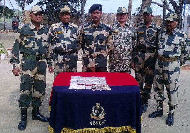 सीमा सुरक्षा बल (बीएसएफ), साउथ फ्रंटियर के जवानों ने सोमवार तड़के मुर्शिदाबाद जिले के लालगोला इलाके से 1.2 किलोग्राम मादक द्रव्य जब्त किया। बीएसएफ को सूचना मिली थी कि सोमवार तड़के एक तस्कर बड़ी मात्रा में मादक द्रव्य बांग्लादेश भेजने वाला है। बीएसएफ 04 बटालियन टीम ने सीमा पर कड़ी नजर रखी थी। सुबह लगभग 6.00 बजे उन्हें एक युवक हाथ में बैग लेकर सीमा की ओर बढ़ते हुए दिखा। जवान उसकी ओर बढ़े तो वह बैग फेंक कर भाग निकला।