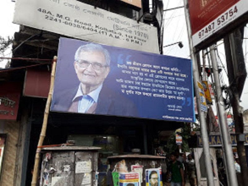 कोलकाता. पश्चिम बंगाल में एक बार फिर जय श्री राम के नाम पर राजनीति शुरू हो गई है। इस बार नोबेल पुस्कार विजेता अमत्र्य सेन के सहारे इस मसले को उभारने की कोशिश की गई है। लगता है कि ममता सरकार इस मसले पर एक और बड़ी चाल चलने की कोशिश में है। सेन के विवादित बयान से संबंधित पोस्टर कोलकाता की सड़कों पर लग गए हैं। हालांकि किसी भी राजनीतिक पार्टी ने इन पोस्टरों को लगाने से मना कर दिया है, पर माना जा रहा है कि सत्तारूढ़ दल के लोगों का ही यह काम है।दरअसल गत 5 जुलाई को सेन ने कहा था कि कि मैंने पहले जय श्री राम नहीं सुना। यह अब लोगों को पीटने के लिए इस्तेमाल हो रहा है। मेरा सोचना है कि इसका बंगाल की संस्कृति से कोई जुड़ाव नहीं है। आजकल कोलकाता में रामनवमी ज्यादा मनाई जाती है। पहले ऐसा कभी नहीं सुना। सड़कों पर लगे पोस्टर्स में ये भी लिखा गया है कि सेन अपनी चार साल की पोती से उसके पसंदीदा देवता के बारे में पूछ रहे हैं तो वह मां दुर्गा का नाम बता रही है। अब तक इन पोस्टरों को लगाने वालों में से कोई सामने नहीं आया है। लेकिन कयास लगाए जा रहे हैं कि सत्तारूढ़ दल के लोगों ने ही इन पोस्टरों को लगाया है। नीला और सफेद रंग जिसमें पोस्टर बना है वह तृणमूल कांग्रेस प्रमुख तथा सीएम ममता बनर्जी का पसंदीदा रंग है।राजनीतिक हल्कों में माना जा रहा है कि सत्तारूढ़ पार्टी सेन के जय श्री राम को लेकर दिए बयान को राज्य में भाजपा के खिलाफ भुनाने की मुहिम में जुट गई है। पार्टी ने बांग्ला भाषा में सेन के बयानों को पोस्टर में छपवाकर महानगर के चौराहे पर लगाए गए हैं। हाल ही में सेन ने जय श्रीराम के नारे पर टिप्पणी की थी। इस बीच राज्य के मंत्री फिरहाद हाकिम ने कहा कि महानगर में सेन के पोस्टरों को साधारण लोगों ने लगाया है। हम सेन का समर्थन करते हैं। वह बंगाल के महान बेटे और शान हैं। उनसे असहमत होकर बीजेपी ने उनका अपमान किया है। जय श्रीराम के नारे लगाना जुर्म नहीं है बल्कि यह एक पवित्र मंत्र है। यह हमें अंदर से पवित्र करता है। लेकिन जब जय श्रीराम को लोगों को नुकसान पहुंचाने के लिए कहा जाता है तो इसकी पवित्रता में बाधा पहुंचती है। उन्होंने कहा कि यह बिल्कुल उसी तरह है जब हम किसी मस्जिद या धार्मिक स्थल पर अल्लाहु अकबर कहते हैं तो इसकी शुद्धता बरकरार रहती है लेकिन जब कोई आतंकी या तालिबानी कश्मीर में निर्दोष लोगों को मारने के लिए इसे कहते हैं तो वह अल्लाहु अकबर की बेइज्जती करते हैं। मैं सीधे भाजपा पर आरोप नहीं लगा रहा हूं लेकिन उसके समर्थक सोशल मीडिया पर इसका दावा कर रहे हैं। वह जबरन लोगों से जय श्रीराम बुलवा रहे हैं। दूसरी ओर हाकिम के बयान पर भाजपा विधायक मनोज तिग्गा ने कहा कि सेन ने अपना ज्यादातर समय बंगाल की बजाए अमेरिका में बिताया है। 