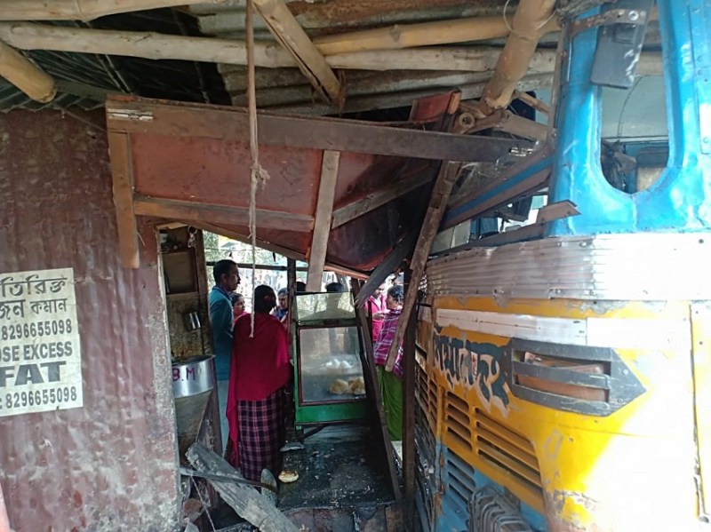 बेंटरा थाना इलाके के दासनगर इच्छापुर के समीप एक निजी बस अनियंत्रित होकर दुकान में जा घुसी। दुकान में मौजूद पांच जने बाल बाल बच गए। इस घटना से गुस्साए लोगों ने उक्त बस में तोड़ फोड़ की। पुलिस ने बताया कि दासनगर से पार्कसर्कस के बीच चलने वाली 72 नंबर रुट की एक बस स्टैण्ड से निकलते ही अनियंत्रित हो गई। पुलिस ने बताया कि बस को जब्त कर लिया गया है। जांच के दौरान पाया गया। बस चालक नहीं बल्कि खलासी चला रहा था। उसे हिरासत में ले लिया गया है। पूरे मामले की जांच की जा रही है।