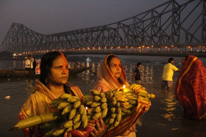 कोलकाता: डूबते सूर्य को दिया अर्घ्य, मांगा आशीर्वाद