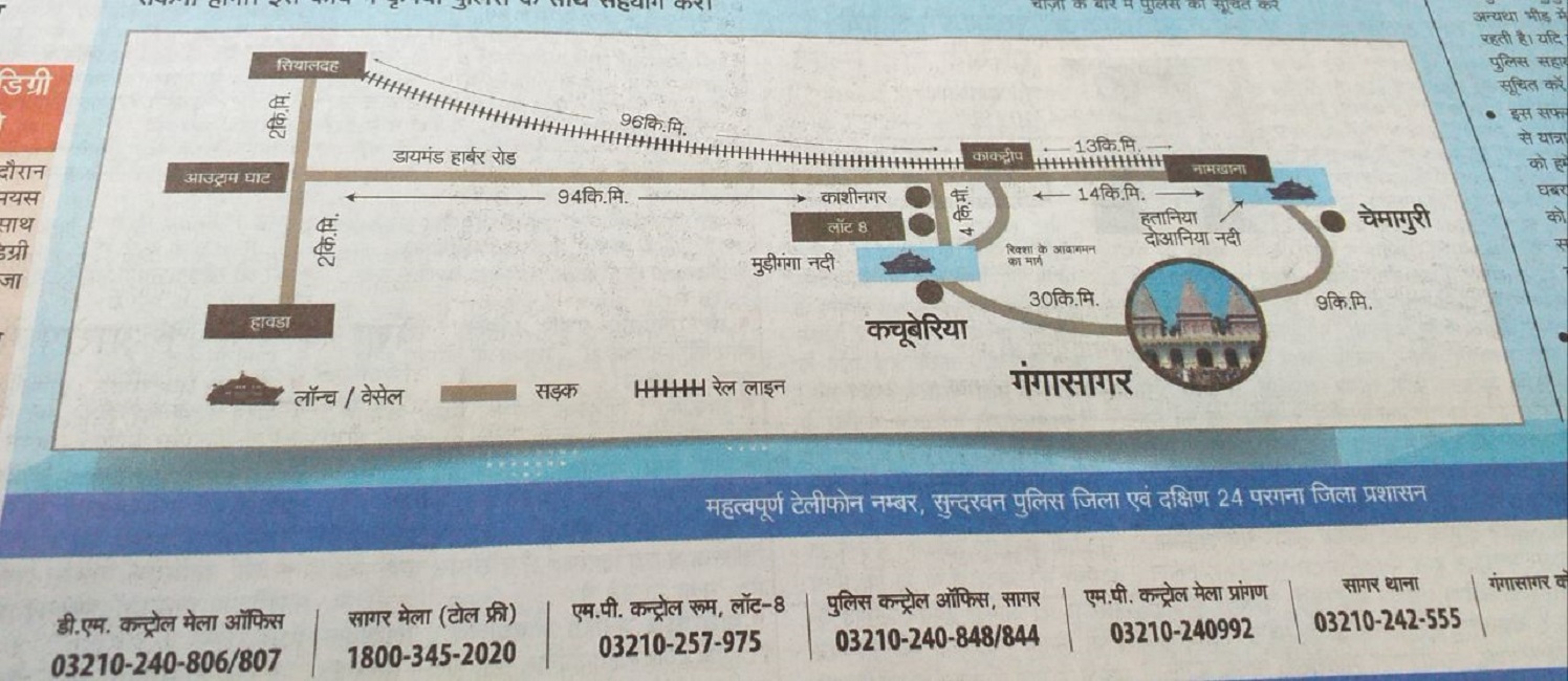 कोलकाता. सारे तीरथ बार-बार गंगासागर एक बार, यह लोकोक्ति यूं ही नहीं प्रसिद्ध है। हवाई, रेल या सड़क मार्ग से गंगासागर सीधा नहीं जुड़े होने के कारण सफर अब भी आसान नहीं है पर कुछ सुगम जरूर हो गया है। पश्चिम बंगाल की राजधानी कोलकाता से सागरद्वीप करीब 130 किलोमीटर दूर है। विमान से आने वालों को महानगर के नेताजी सुभाष चन्द्र बोस एयरपोर्ट पर उतरना पड़ेगा, वहां से सड़क मार्ग से दक्षिण 24 परगना जिले के काशीनगर, लॉट न. 8 पहुंचना होगा। वहां से लांच या वेसेल से मूड़ीगंगा नदी पार कर कचूबेडिय़ा, फिर कचूबेडिय़ा से किसी वाहन से करीब 30 किलोमीटर दूर गंगासागर तट पर पहुंचा जा सकता है। ट्रेन से आने वालों को हावड़ा या सियालदह स्टेशन उतरना पड़ेगा। अगर कोई ट्रेन से आगे का सफर जारी रखना चाहता है तो उसे सियालदह साउथ सेक्शन से काकद्वीप तथा नामखाना स्टेशन जाना पड़ेगा। नामखाना स्टेशन से चेमागुड़ी आकर लांच या वेसेल से गंगासागर पहुंचा जा सकता है। इसी तरह हावड़ा से पहले बाबूघाट पहुंचना पड़ेगा। बाबूघाट से बस करीब 94 किलोमीटर दूर काशीनगर, लॉट न. 8 पहुंचा देगी।