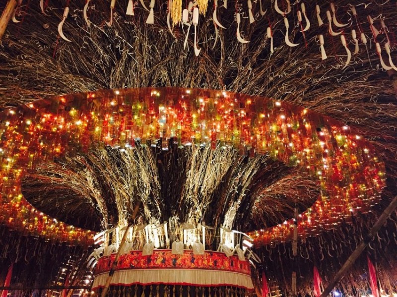 ऐसे में बेहला के बडि़शा सार्वजनी दुर्गोत्सव ने अपने मंडप में किसानों की जिंदगी से रूबरू कराने का प्रयास किया है। देश के किसानों को समर्पित इस मंडप का निर्माण सूखे घास-फूस, अनाजों को खोले, धान की बालियां, व धान-गेहंू के सूखे पौधों से की गई है। यहां पंडाल के निर्माण सूखे गन्ने, सूखे पत्ते आदि का इस्तेमाल किया गया है। इसके अलावा खेतों में किसानों के काम आने वाले औजार जैसे कुदाल, खुंती, हसीया, कुल्हाड़ी आदि को लाइटिंग के माध्यम से सजाया गया है।