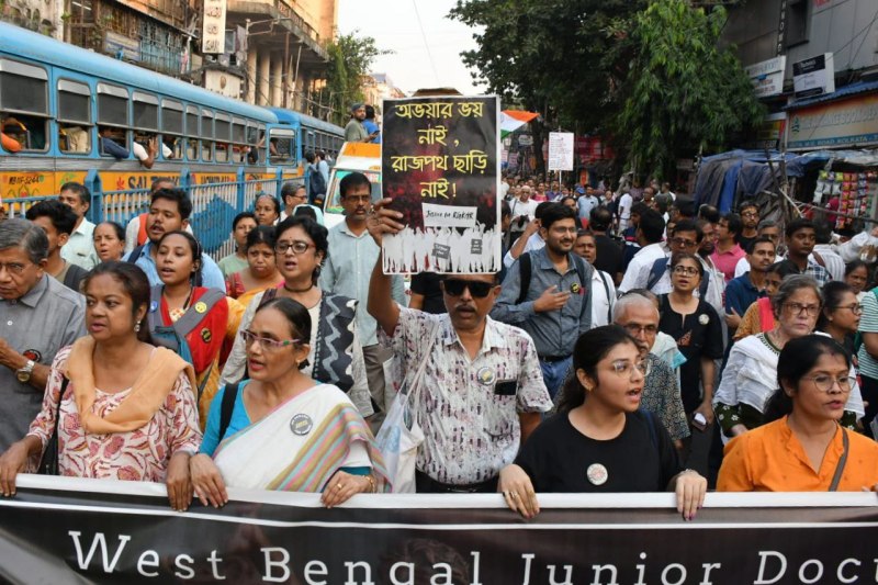 पश्चिम बंगाल जूनियर डॉक्टर्स फ्रंट के बैनर तले जूनियर डॉक्टरों ने शहर के सभी मेडिकल कॉलेजों में मंच बनाए, जिन पर नौ अगस्त को महिला चिकित्सक की हत्या की घटना के बाद से जारी विरोध प्रदर्शनों के फोटो, बैनर और पोस्टर प्रदर्शित किए गए। जुलूस के अंत में जनता चार्जशीट दायर की गई। जूनियर डॉक्टर देवाशीष हलदर ने कहा कि हम सड?ों पर उतरेंगे, आंदोलन ऐसे ही जारी रहेगा। न्याय मिलने तक यह आंदोलन जारी रहेगा। डॉक्टरों के इस कार्यक्रम में आम लोगों के अलावा कई प्रतिष्ठित लोग भी शामिल हुए, इनमें चैती घोषाल, देवालीना दत्त, पूर्व न्यायाधीश अशोक गांगली शामिल थे।