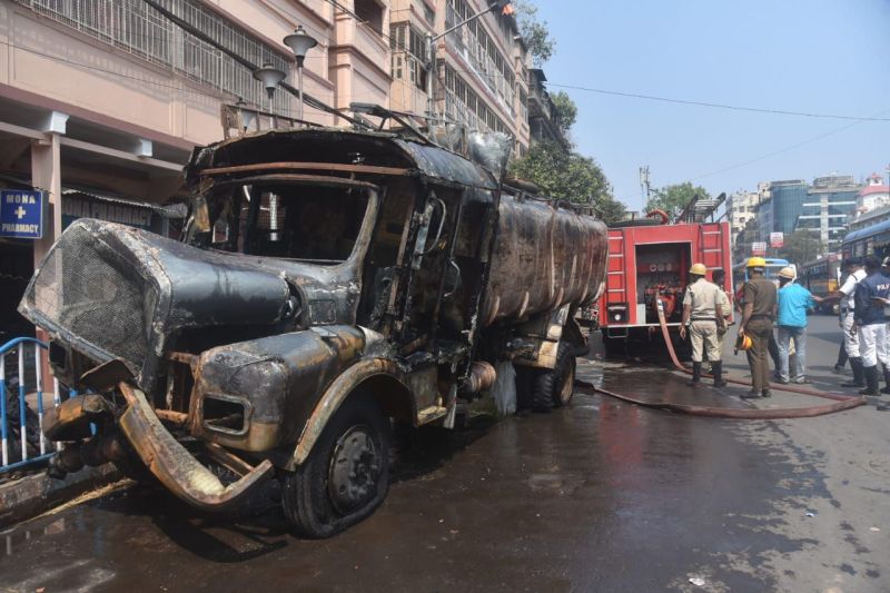 महानगर के व्यस्त सेंट्रल एवेन्यू में बुधवार सुबह करीब 5 बजे दर्दनाक हादसा हुआ। मोहम्मद अली पार्क के पास नियंत्रण खोकर तेज रफ्तार में तेल से भरा टैंकर पलट गया। हादसे के बाद उसमें भीषण आग लग गई। टैंकर के चालक की जिंदा जलकर मौत हो गई। पास के एक घर में आग लग गई। हालांकि घर में कोई नहीं था। हादसे के बाद टैंकर को जलता देख स्थानीय लोगों ने दमकल विभाग को सूचना दी। पास में मौजूद दो दमकलें पहुंची तथा आग को बुझाना शुरू किया। एक के बाद एक दमकल की और 8 गाडिय़ां मौके पर पहुंची। आग बुझाने के लिए फोम का भी इस्तेमाल किया गया। दो घंटे की कड़ी मशक्कत के बाद दस दमकलों ने आग पर काबू पाया। ड्राइवर का जली अवस्था में शव मिला।