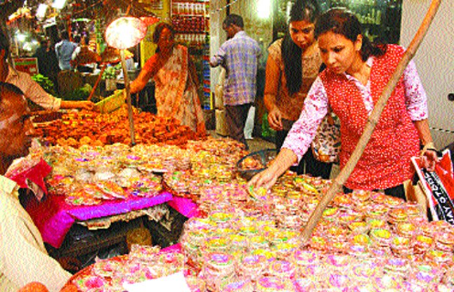 बाजार हुआ गुलजार: बड़ाबाजार, मानिकतल्ला, जग्गूबाबू बाजार इन दिनों गुलजार है। इन बाजारों में आकर लोग सजावट के सामान खरीद रहे हैं। सबसे अधिक भीड़ राममंदिर के पास और बड़ाबाजार में देखने को मिली। लोग दीए, पूजन सामग्री, सजावट के सामान के अलावा सुखे मेवे, खोवा आदि खरीद रहे थे।