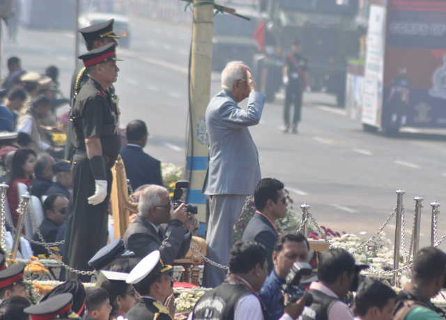 कोलकाता. गणतंत्र दिवस पर शुक्रवार को ऐतिहासिक रेड रोड पर राज्य सरकार के विभिन्न विभाग समेत सेना, नौसेना और वायु सेना की झांकी निकाली जाएगी। पश्चिम बंगाल के राज्यपाल केशरीनाथ त्रिपाठी तथा मुख्यमंत्री ममता बनर्जी समारोह के मुख्य अतिथि होंगे। इसे देखते हुए सुरक्षा के व्यापक प्रबंध किए गए हैं। राज्य सचिवालय के सूत्रों ने बताया कि प्रजातंत्र दिवस पर रेड रोड पर सुबह 10 बजे से झांकी शुरू होगी। इससे पहले राज्यपाल ध्वजारोहण करेंगे। वायुसेना का हेलीकॉप्टर एमआई-17 वी-5 आकाश से पुष्प बारिश करेगा। इसके उपरांत नौसेना, वायुसेना और थलसेना के जवान मार्च पास्ट करेंगे। राज्यपाल और मुख्यमंत्री परेड की सलामी लेंगे। इस अवसर पर राज्य मंत्रिमंडल के सदस्यों के अलावा विभिन्न देशों के उच्चायोग के अधिकारी उपस्थित रहेंगे। झांकी का नेतृत्व बंगाल एरिया के अफिसिएटिंग जनरल अफसर कमाण्डिंग (जीओसी) तथा परेड कमाण्डर मेजर जनरल सचिन सूरी करेंगे।