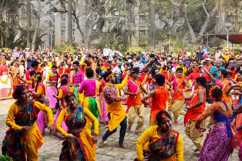 फूलों से होली खेली जाती थी। पिछले कुछ दशकों से विश्वविद्यालय में होने वाले आयोजन का हिस्सा बनने के लिए राज्यवासी बड़ी संख्या में शांतिनिकेतन पहुंचते हैं।