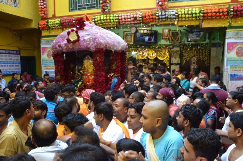 बांधाघाट(हावड़ा). माघ पूर्णिमा पर बांधाघाट, सलकिया अंचल के 480 वर्ष प्राचीन ऐतिहासिक शीतला माता स्नान यात्रा में सोमवार को सूर्योदय के साथ ही श्रद्धालुओं का सैलाब शीतला माता को पूर्ण समर्पण के साथ रिझाने में जुट गया। पूरा उत्तर हावड़ा आरोग्य प्रदायिनी मां शीतला की भक्ति में डूबा रहा और पूरा वातावरण शीतला माता के गगनभेदी जयकारों से गूंजता रहा। समाजसेवी विकास कुमार गुप्ता ने बताया कि यह यात्रा देश में केवल यहीं निकलती है। बड़ी मां अपने मंदिर से सोमवार शाम 4 बजे गुलाब के फूलों से सजी पालकी में सवार स्नान यात्रा के लिए निकली और इस झांकी के साथ लाखों भक्त मौजूद थे। जिस मां के हाथों इस सृष्टि का संचालन होता है वही आज श्रद्धालुओं के कंधों पर पालकी में सवार होकर नगर भ्रमण पर निकली और पूरे अंचल को आशीर्वाद देते हुए गंगा में स्नान कर अपने मंदिर वापस लौटी। इसकी शुरूआत इसके मुख्य केन्द्र सलकिया के अरविन्द रोड स्थित बड़ी शीतला माता मंदिर और बंाधाघाट स्थित गंगाघाट से हुई। जो बाबूडांगा, मुर्गीहाटा, नंदीबागान आदि स्थानों की परिक्रमा कर वापस मंदिर पहुंची। सोमवार तडक़े से ही बांधाघाट में गंगा स्नान कर वहीं से बड़ी शीतला माता मंदिर तक दंडवत प्रणाम (दंडी प्रणाम) करते हुए व्रती श्रद्धालुओं की ओर से प्रथम चरण की पूजा की गई। इसके बाद श्रद्धालुओं ने पुन: गंगा में स्नान किया और शीतला माताओं को स्नान कराने के लिए सडक़ के दोनों किनारों पर कतारबद्ध खड़े हो गए। बडी़ मां अपने मंदिर से सोमवार शाम 4 बजे गुलाब के फूलों से सजी पालकी में सवार होकर स्नान यात्रा के लिए निकली। बड़ी मां की झांकी के साथ लाखों भक्त मौजूद थे। इस महापर्व में गोलाबाड़ी से लेकर घुसुड़ी, पिलखाना, लिलुआ और कोना से लेकर सलकिया तक चतुर्दिक शीतला माता के जयकारों से पूरा वातावरण गूंज उठा। सुरेश कुमार भुवालका ने बताया कि दोपहर बाद शुरू ऐतिहासिक शीतला माता स्नान यात्रा में बैंड-बाजों के साथ मनोहारी झांकियों के मध्य पालकियों पर सवार शीतला माताओं की झांकियों को गंगाघाट ले जाकर स्नान कराने और फिर उन्हें उनके मंदिरों में लाकर स्थापित करने का क्रम जारी रहा। इस बार पुलवामा आतंकी हमले में शहीद जवानों को श्रद्धांजलि देते हुए झांकियां आकर्षण का केंद्र रहीं। शोभायात्रा में देवी-देवताओं की परम्परागत झांकियों के अलावा सम-सामयिक संदर्भों पर आधारित झांकियां भी शामिल थी। इस दौरान उत्तर हावड़ा का पूरा क्षेत्र लाखों श्रद्धालुओं से भर गया। मुख्य 7 शीतला माताओं में से छोटी मां को छोड़ कर 6 माताओं सहित अन्य माताओं को मिलाकर 100 शीतला माताओं को पालकी में सजाकर स्नान के लिए गंगाघाट लाया गया। इस दौरान सडक़ों के दोनों किनारे खड़े श्रद्धालुओं ने गंगाजल स