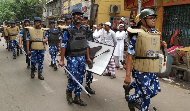 पुलिस ने इलाके में लाउडस्पीकर से घोषणा कर लोगों से इलाके में चहलकदमी से बचने को कहा। एक पुलिसकर्मी को घोषणा करते सुना गया कि अगर आप आसपास घूमते दिखे, तो हम कानून के अनुसार कड़ी कार्रवाई करेंगे। कोलकाता पुलिस के द्रूत कार्य बल (आरएएफ) के एक बड़े दल को इलाके में भेजा गया। पुलिसकर्मियों ने पथराव की घटनाओं के बाद रूट मार्च निकाला।