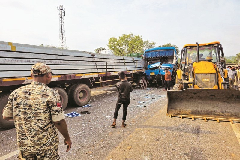 ट्रक और बस में जबरदस्त भिड़ंत (Photo source- Patrika)