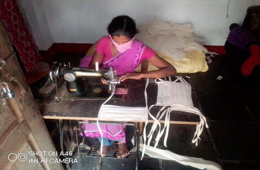 मां बना रही घर पर मास्क, बेटा घूम घूम कर बांट रहा पूरे गांव में नि:शुल्क