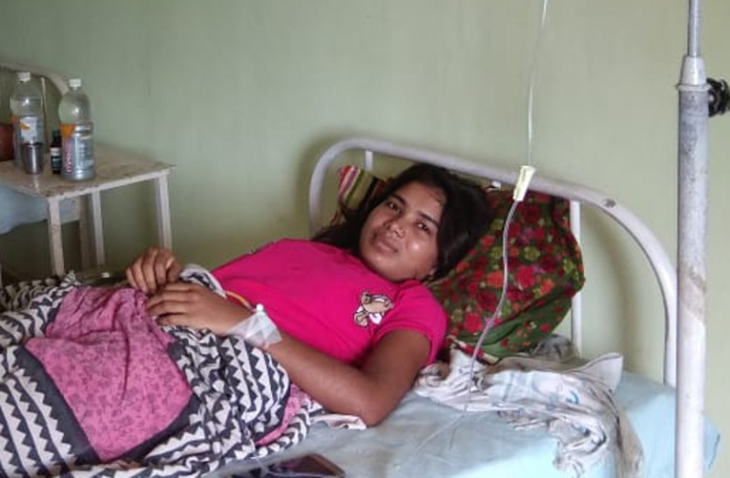 घटना से परिवार को अवगत कराया। बोतल को दिखाया। इसके थोड़ी देर बाद किरण ने चक्कर आने की शिकायत की। उसे आनन-फानन में शनिवार की रात लगभग साढ़े आठ बजे पाली किरण को सरकारी अस्पताल पहुंचाया गया। किरण को उल्टी भी हुई। डॉक्टर की निगरानी में किरण का इलाज जारी है। उसकी हालत खतरे से बाहर बताई जा रही है। किरण पाली में कॉलेज की पढ़ाई करती है।