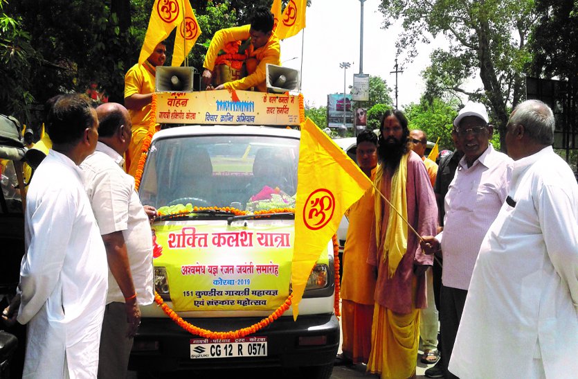 रविवार को इस दिव्य शक्ति कलश की पूजा अर्चना के पश्चात चार पहिया वाहन में सजाकर दिपहिया वाहनों की रैली प्रात: 10:30 बजे सांसद डॉ बंशीलाल महतो ने झंडी दिखाकर गायत्री शक्ति पीठ से रवाना किया। यह यात्रा टीपीनगर गुरुद्वारा, पावर हाऊस रोड,मेनरोड, सीतामणी, मानिकपुर, पंडित रविशंकर शुक्ल नगर, एमपीनगर, घंटाघर चौक होते हुए गायत्री प्रज्ञापीठ कोरबा (पूर्व) पहुंची, जहां मुख्य न्यायिक दण्डाधिकारी उर्मिला गुप्ता एवं गायत्री परिवार के महिला मण्डल की बहिनों के द्वारा पूजा अर्चना एवं आरती के साथ रैली का समापन किया गया। इस अवसर पर गायत्री प्रज्ञापीठ में महाप्रसाद/भंडारा का आयोजन किया गया। यह कलश ढाई-ढाई दिन तक प्रज्ञा पीठों में रखा जाएगा और लोग दर्शन करेंगे।