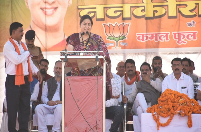 मंच से जनता को संबोधित करते हुए स्मृति ने कहा