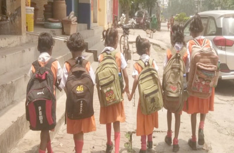 बस्ते के बोझ तले दब रहा बचपन, नियम है ढाई किलो ढो रहे 6 से 8 किलो लाद कर नौनिहाल जा रहे स्कूल