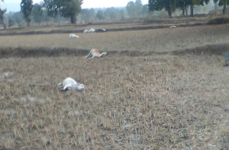 अधिकारी ये बात कहकर इस मामले को दबाने का प्रयास कर रहे हैं कि शायद किसान खेतों में कीटनाशक का छिड़काव किए होंगे। इसे खाने से गायों की मौत हुर्ई होगी, लेकिन अधिकारी भूल रहे हैं कि फसल पूरी तरह से कट चुकी थी। खेत पूरी तरह से बंजर थे। बंजर खेतों में बगैर जोताई कीटनाशक नहीं डाली जाती है। सीधे तौर पर गायों को किसी चीज में जहर मिलाकर खिलाया गया इससे उनकी मौत हुई।