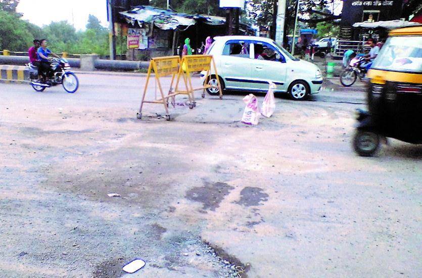 लोग दुर्घटना के शिकार हो रहे हैं। इसके बाद रविवार को सड़क का मरम्मतीकरण कराया था। लेकिन निर्माण कार्य में अनियमितता बरती गई। सड़क एक दिन भी नहीं टिक सकी। सोमवार को सड़क उखडऩे लगी। इंजीनियर को एक सड़क के गड्ढे को भरने में इतनी जद्दोजहद करनी पड़ रही है, इसके बावजूद सड़क को दुरूस्त नहीं कर पा रहे हंै। एक सप्ताह पहले गड्ढे ही सड़क का मरम्मतीकरण किया गया था। लेकिन कुछ घंटे में ही सड़क उखड़ गई। लोगों की सुरक्षा के लिए गड्ढे के ऊपर बेरिकेट्स लगाया गया।