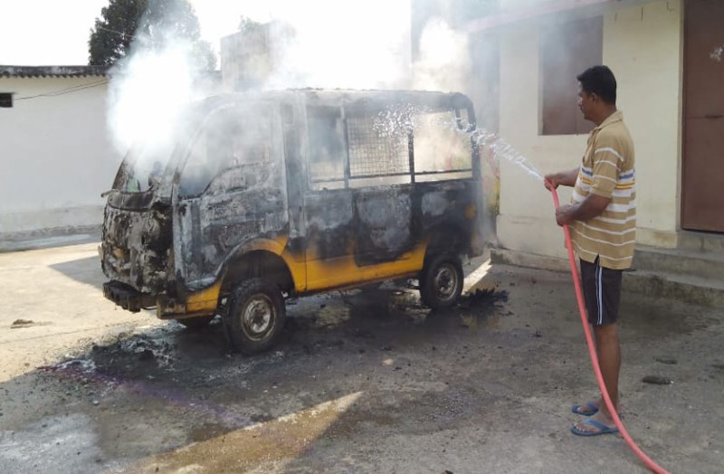 पैसे की लेनदेन को लेकर मालिक व ड्राइवर के बीच हुआ विवाद, ड्राइवर ने वैन को किया आग के हवाले, मचा हड़कंप
