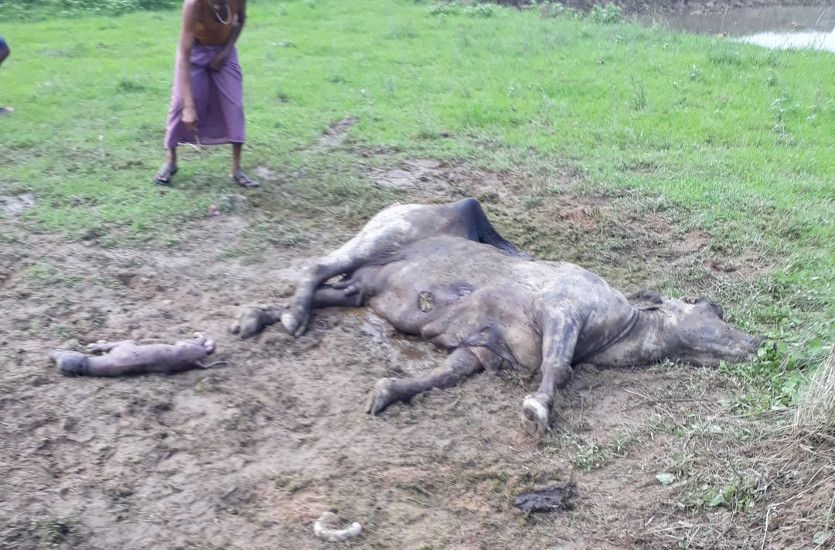 कोरबा. हाथियों का दल शहर के निकट झगरहा और भुलसीडीह के आसपास उत्पात मचा रहा है। भुलसीडीह के निकट हाथियों ने मवेशियों पर हमला कर दिया और इसमे ंएक भैंस मौके पर ही मर गयी। हाथियों के इस हमले से गांव में दहशत का आलम है और ग्रामीण बारिश के इस मौसम में रतजगा करने के लिए मजबूर हो रहे हैं। इनमें से कई क्षेत्र जंगल के निकट होने के कारण यहां बिजली की आपूर्ति भी ठीक प्रकार से नहीं हो पा रही है।