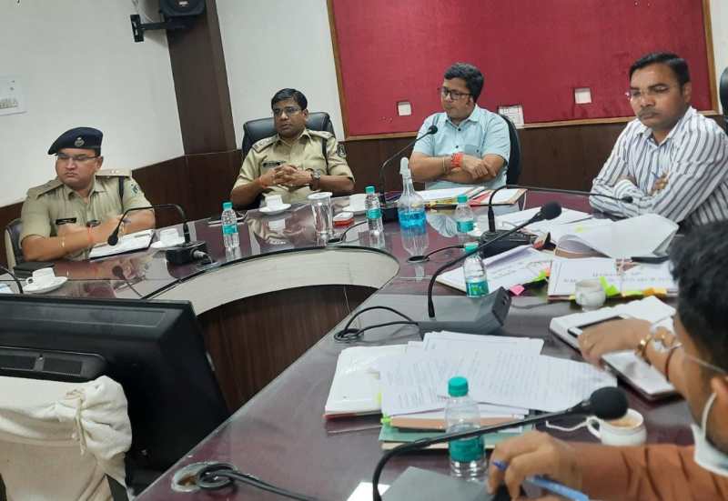 अधिकारियों की बैठक लेते कलेक्टर संजीव झा