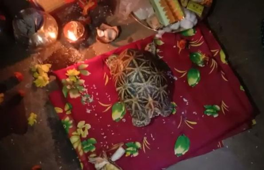 ग्रामीणों के हाथ लगने के बाद से इस कछुए को गांव वाले आस्था से जोड़कर पूजा पाठ कर रहे हैं। इसकी सूचना जब वन विभाग के अधिकारिओं को लगी तब मौके पर पहुंचे और कछुए के संबंध में जानकारी जुटाई। विभागीय कर्मचारियों ने इस कछुए की प्रजाती का नाम इंडियन स्टार टर्टल बताया है,जो एक दुर्लभ प्रजाती है। कछुए को अपने कब्जे में लेकर इसे इसके संरक्षण स्थल में छोड़ने की तैयारी की जा रही है।
