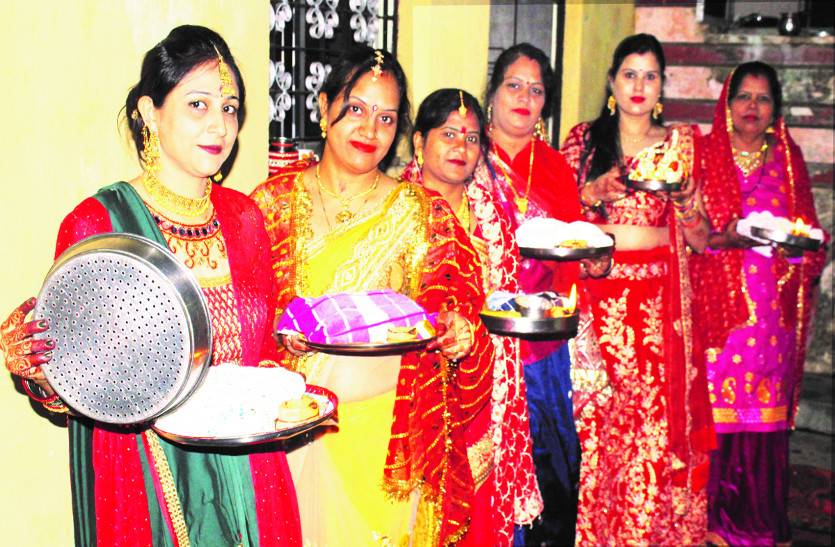 कार्तिक माह के कृष्ण पक्ष की चतुर्थी यानि शनिवार को महिलाओं ने करवाचौथ का व्रत रखा। सुबह सूर्योदय से पहले सुहागिनों ने सरगी खाकर निर्जला व्रत प्रारंभ किया। शाम होते ही चांद का दर्शन किया। मिट्टी व तांबे के पात्र से चंद्रदेव को अघ्र्य दिया।