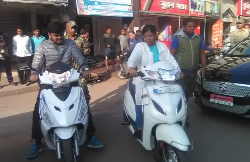 कोरबा. मंगलवार सुबह जिले की कलेक्टर किरण कौशल और नगर निगम के आयुक्त राहुल देव ने शहर की सफाई व्यवस्था का जायजा लेने के लिए स्कूटी पर निकले। जहाँ एक तरफ उनके इस मुस्तैदी से लोग काफी खुश दिखें वहीँ दोनों अधिकारीयों ने जाने अनजाने हेलमेट ना पहन कर यातायात नियमों का उल्लंघन भी किया।