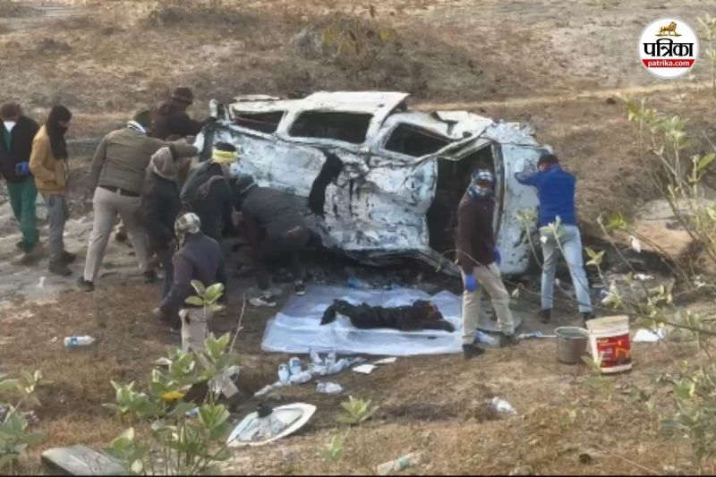 खाई में गिरी तेज रफ्तार कार (फोटो सोर्स- पत्रिका)