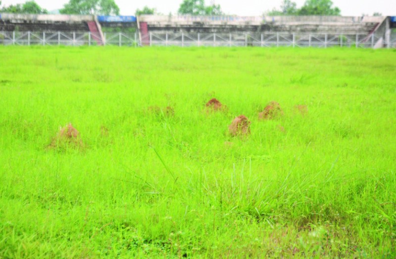 कोरबा. स्टेडियम में पिछले साल लगाई गई ८२.८३ लाख रूपए की घास गाय चर गई। ठेेकेदार को घास लगाने के साथ ही साल भर मेंटनेंस भी करना था। २४ घंटे देखरेख के लिए गार्ड रखने थे। जिसे नहीं रखा गया। मुख्य दरवाजे खुले छोड़ दिए गए। नतीजा यह रहा कि साल भर में नए घास का नामोनिशान मिट चुका है। कटीलें घास व पौधे तक उग चुके हैं।