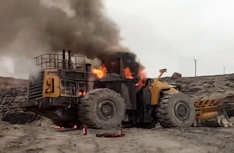 मजदूरों ने पे लोडर से फायर स्टूगेशर को उतार कर आग बुझाने की कोशिश की। कामयाबी नहीं मिली। इंजन से होकर आग टायर तक पहुंच गई। घटना की सूचना प्रबंधन को दी गई। आग की लपटें इतनी अधिक तेज थी कि मजदूरों की आंखों के सामने देखते ही देखते मशीन राख हो गई। आग लगने का कारण स्पष्ट नहीं है। लेकिन मजदूरों ने शार्ट सर्किट की वजह से आग लगने की आशंका व्यक्त की है।