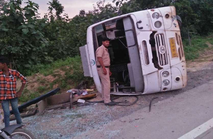 कोरबा. अंबिकापुर से कटघोरा के रास्ते कोरबा पहुंचने वाली राजधानी बस गुरसिया के पास बेकाबू होकर पलट गई। इसमें छह यात्री घायल हो गए। दो यात्रियों की हालत गंभीर बताई जा रही है। घटना गुरुवार शाम करीब पांच बजे की है। राजधानी सर्विस की बस सीजी १०, १०९३ अंबिकापुर से कोरबा के लिए निकली थी। राष्ट्रीय राजमार्ग संख्या १११ पर बांगो थाना क्षेत्र में ग्राम सरभोका के पास अंधे मोड पर बस का संतुलन बिगड़ गया। बस बेकाबू होकर सड़क पर किनारे पलट गई। बस में चीख पुकार मच गई। बस के सामने का शीशा तोड़कर घायल यात्रियों को बस से बाहर निकाला गया। उन्हें पोड़ी उपरोड़ा के सरकारी अस्पताल में भर्ती किया गया है। घायलों में संतोषी बाई, नीली बाई, बोधन सिंह, रामकुमार और रामायण शामिल है।