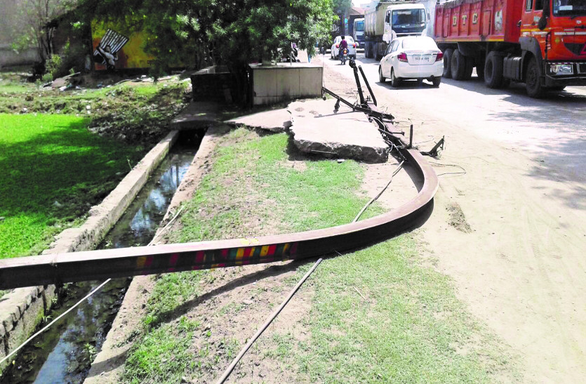 पाली मुख्य मार्ग स्थित लोहे के 11 केवी के खंभे को गोयल रोड लाइन की ट्रेलर क्रमांक सीजी-07सीए 2282 के लापरवाही पूर्वक वाहन चलाते हुए ठोकर मार कर गिरा दिया। इससे 11 केवी के तार एवं टूटकर रोड में झूल गए। इस दौरान मोटर साइकिल एवं ऑटो चालक इस दुर्घटना का शिकार होते होते बच गए। राष्ट्रीय मार्ग होने के कारण इस मार्ग पर यातायात का काफी दबाव बना रहता है। घटना के बाद क्षेत्र की बिजली आपूर्ति ठप हो गई। इससे लोग गर्मी से परेशान रहे। बिजली विभाग को सूचना मिलने पर इसका सुधार कार्य किया गया। पाली पुलिस ने मामला दर्ज कर ट्रेलर को जब्त कर लिया है।