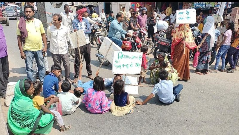 कोरबा के इस कसबा में गहराया पानी का संकट, परिवार के साथ सड़क पर बैठे लोग