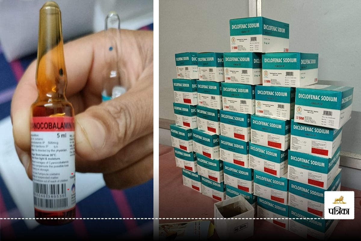 साथ ही डाईक्लोक इंजेक्शन के 1602 एंपुल और डाईनोकोबाला मीन इंजेक्शन के 373 एंपुल जब्त किए गए हैं। जब्त इंजेक्शन सीजीएमएससी से आपूर्ति कराई गई थी। इंजेक्शन का एक्सपायरी डेट नवंबर 2025 और 6 जून 2024 है।