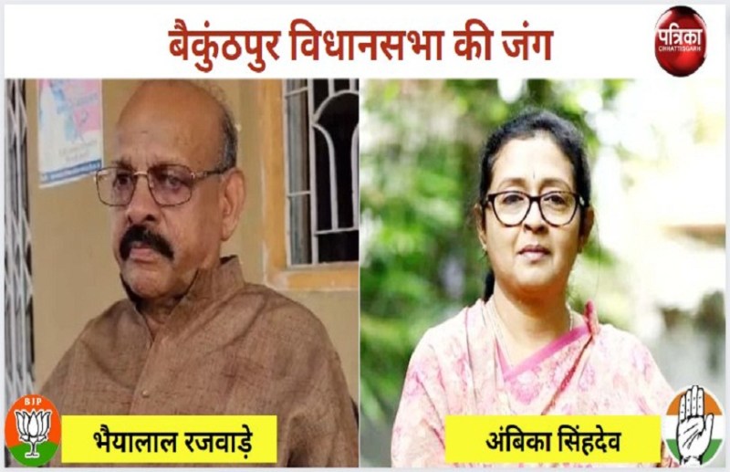 इसी बीच बैकुंठपुर विधानसभा सीट के नतीजे सामने आ गए है। जहां बीजेपी प्रत्याशी भैयालाल रजवाड़े व कांग्रेस प्रत्याशी अंबिका सिंहदेव के बीच कांटे की टक्कर थी। महामुकाबले के इस दौर में बीजेपी ने बाजी मारते हुए कांग्रेस को पछाड़ दिया है। बता दें कि बीजेपी प्रत्याशी ने 25413 वोटों से कांग्रेस को मात दी है। इस जीत के बाद बीजेपी में खुशी की लहर दौड़ रही है। वे जीत के जश्न मानते नजर आ रहे हैं।