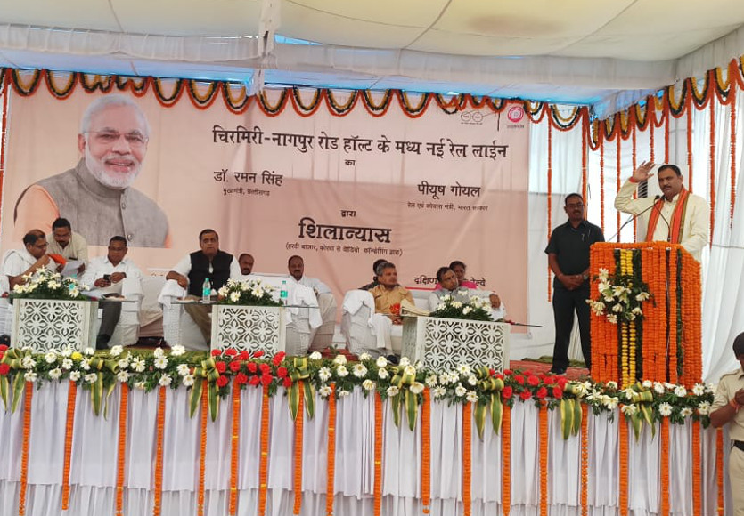 कार्यक्रम में कोयला एवं रेलमंत्री गोयल ने कोरबा के हरदीबाजार में आमसभा को संबोधित किया। इस दौरान वीडियो कांफ्रेंसिंग के माध्यम से चिरमिरी व नागपुर हॉल्ट स्टेशन के बीच नई रेलवे लाइन निर्माण कार्य कराने भूमिपूजन किया। दक्षिण पूर्व मध्य रेलवे बिलासपुर ने भूमिपूजन कराने चिरमिरी में कार्यक्रम रखा था।