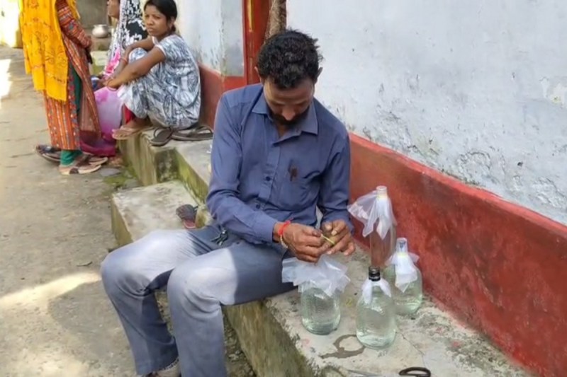 Water sample collection in liquor bottle (Photo- Patrika)