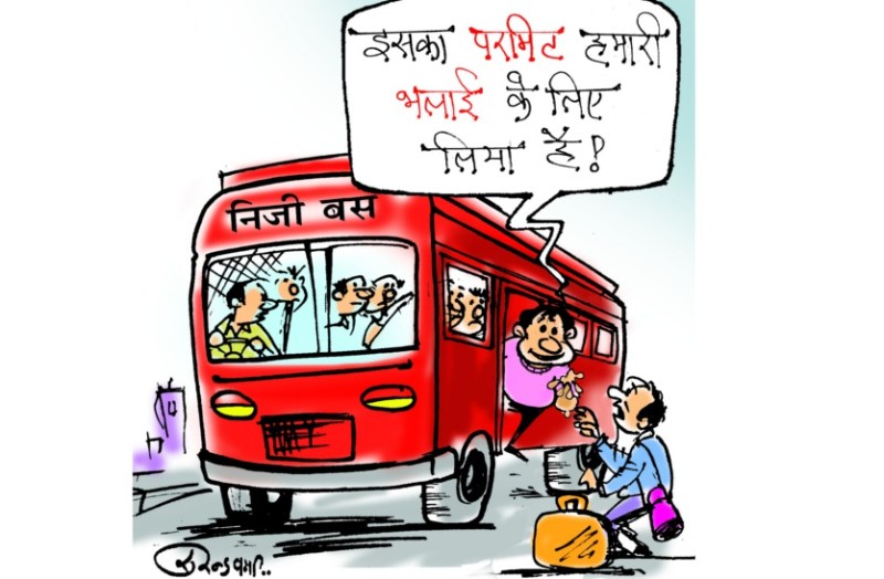 कोटा . नगरीय परिवहन के कॉमर्शियल परमिट से बचने के लिए कोटा में निजी बस संचालकों ने प्रशासन की आंखों में धूल झोंकने का 'धंधा चला रखा है। इसके जरिए लाखों रुपए के राजस्व की चोरी की जा रही है। यह सब आला अधिकारियों की जानकारी में होने के बाद भी सभी हाथ पर हाथ धरे बैठे हैं।