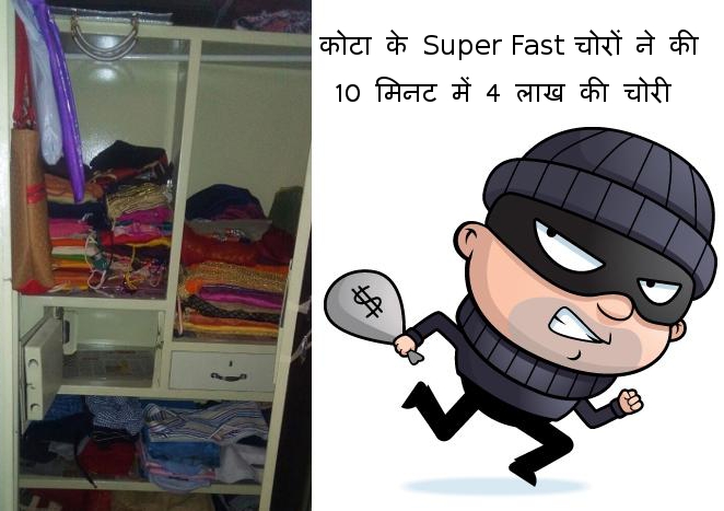 चोरो के हौंसले इस कदर बुलंद है कि उन्होंने महज 10 मिनट में ही घर के मुख्य द्वार का ताला तोड़कर अलमारी को सरिए से तोड़कर चार लाख के जेवर व नकदी पर हाथ साफ कर दिया।