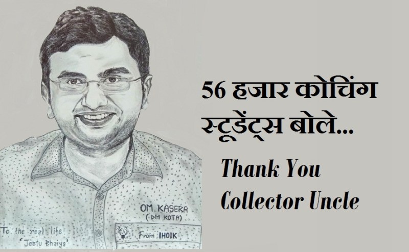 जिला कलक्टर ओम कसेरा को ट्वीट करके आभार प्रकट किया है। शुक्रवार को एक ही दिन में दोपहर 12 बजे शाम पांच बजे तक उनके ट्वीटर पर 56 हजार संदेश प्राप्त हुए हैं। इनमें उन्होंने अपनी भावनाएं व्यक्त करते शुक्रिया अदा किया है। किसी ने कलक्टर ओम कसेरा का स्कैच बनाकर भेजा है तो किसी ने उनके सम्मान में कविता लिखी है। एक साथ इतने संदेश आने के कारण उनका अकाउंट रैंकिंग में 11वें नम्बर पर रहा। बिहार में इसका सबसे ज्यादा ट्रेंड रहा। संदेश एक बार आना शुरू हुए उसके बाद थमे नहीं। छात्र दीपक साहू ने लिखा छुप-छुप के ट्वीट कर रहा हूं, डर है कि घर वाले डांटे नहीं दें यह बोल कि कब से फोन चला रहे हो, पर आज डांट खाने को तैयार हूं। एक छात्र ने लिखा किस तरह शुक्रिया कहे आपके प्यार का कोटा में जो मिला, आखिर एक इंसान की मेहनत को सलाम, जिन्होंने सब किया और रह गए बेनाम..., और कोटा में कुछ चमत्कार सा हुआ, एक बंदे ने हमारे लिए पूरे सिस्टम से सुना पर वो बात पर अटल रहे...ऐसे अनेक संदेश बच्चों ने भेजे हैं। छात्रा पूजा ठाकुर ने लिखा बहुत मुश्किल होता है सरकार की हर शर्त मानना और अपना फर्ज निभाना, आपने दोनों ही बखूबी निभाया। कोटा से करीब 58 हजार बच्चों को सुरक्षित घरों को भेजा गया है। इस बारे में जब कोटा कलक्टर से बात करने का प्रयास किया तो उन्होंने बात नहीं की और सिर्फ इतना कहा, जो काम मुझे करना तो मैने पूरा किया। इस बारे में कुछ कहना नहीं चाहता।