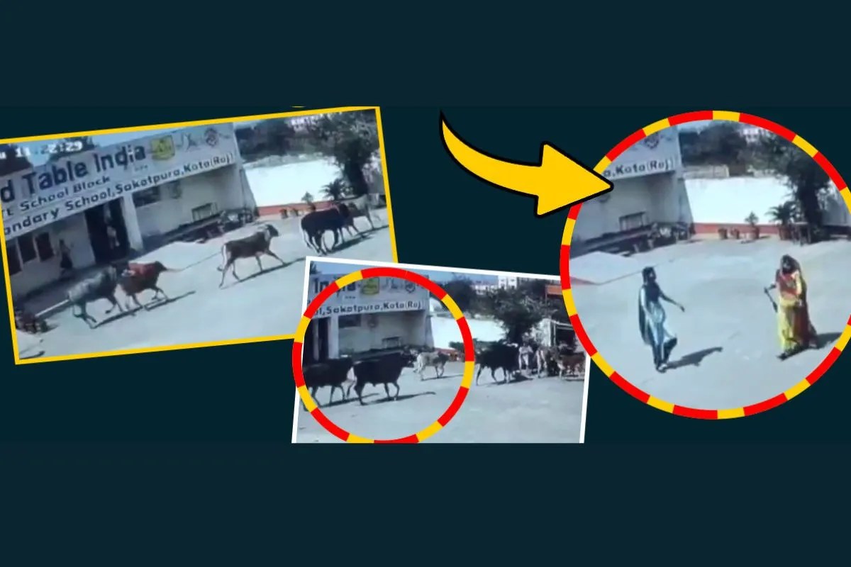 Kota Government School Cows Incident: कोटा शहर में गुरुवार को 20 से ज्यादा गोवंश दौड़ते हुए सकतपुरा स्थित राजकीय बालिका स्कूल परिसर में जा घुसी। यह तब हुआ जब नगर निगम की टीम क्षेत्र में सड़क पर घूमते गोवंश को पकड़ने गई थी। इसी दौरान बदहवास दौड़ते हुए गोवंश स्कूल परिसर में जा घुसी।