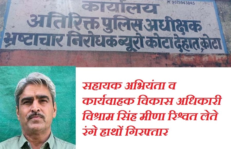 Action of Kota Rural ACB: कोटा. कोटा ग्रामीण एसीबी ने गुरुवार को सुल्तानपुर पंचायत समिति के सहायक अभियंता व कार्यवाहक विकास अधिकारी विश्राम सिंह मीणा को 50 हजार रुपए की रिश्वत लेते रंगे हाथों गिरफ्तार कर लिया।