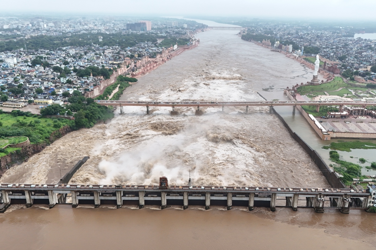 Rajasthan Dam: हाड़ौती अंचल में सोमवार को भी भारी बारिश का दौर जारी रहा। प्रदेश में सर्वाधिक बारिश कोटा जिले के रामगंजमंडी में 10 इंच (242 एमएम) दर्ज की गई। चम्बल नदी के कैचमेंट एरिया में जोरदार बारिश से बांधों में पानी की भारी आवक हुई। इससे राणा प्रताप सागर बांध के 6 गेट खोलकर 2 लाख 19 हजार क्यूसेक पानी छोड़ा गया। जवाहर सागर बांध के 7 गेट खोलकर 285000 क्यूसेक व कोटा बैराज के 12 गेट खोलकर करीब 3 लाख क्यूसेक पानी डिस्चार्ज किया गया। कोटा से धौलपुर तक अलर्ट जारी किया गया।
