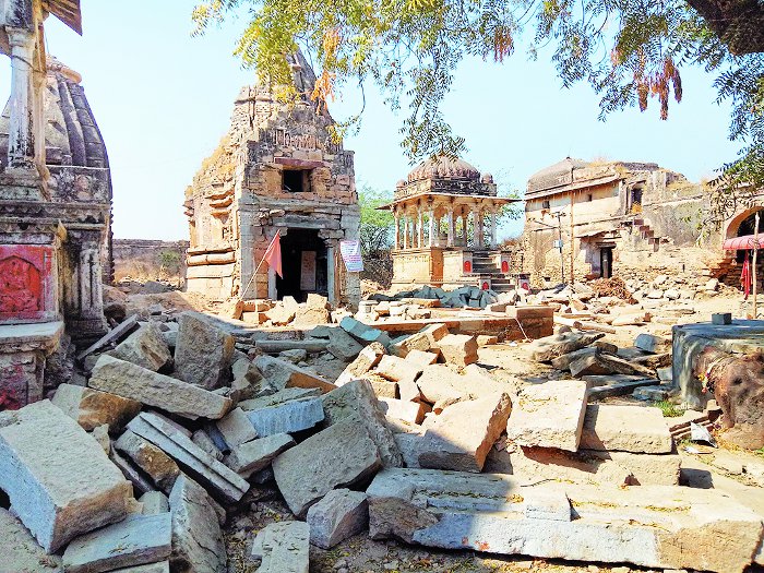 पुरातत्व विभाग के वृत्ताधिकारी उमराव सिंह ने बताया कि सभा मंडप गिराने से पहले ठेकेदार को मंदिर परिसर में स्थापित प्रतिमाएं और अन्य पुरातात्विक सामग्री एक जगह रखने के लिए कहा था, लेकिन उसकी मजबूरी रही होगी, जो मलबे में दबा दी। समाधियों का कोई ऐतिहासिक महत्व नहीं था, लोग भी नहीं चाहते थे कि वे बनी रहें इसलिए हटा दिया।